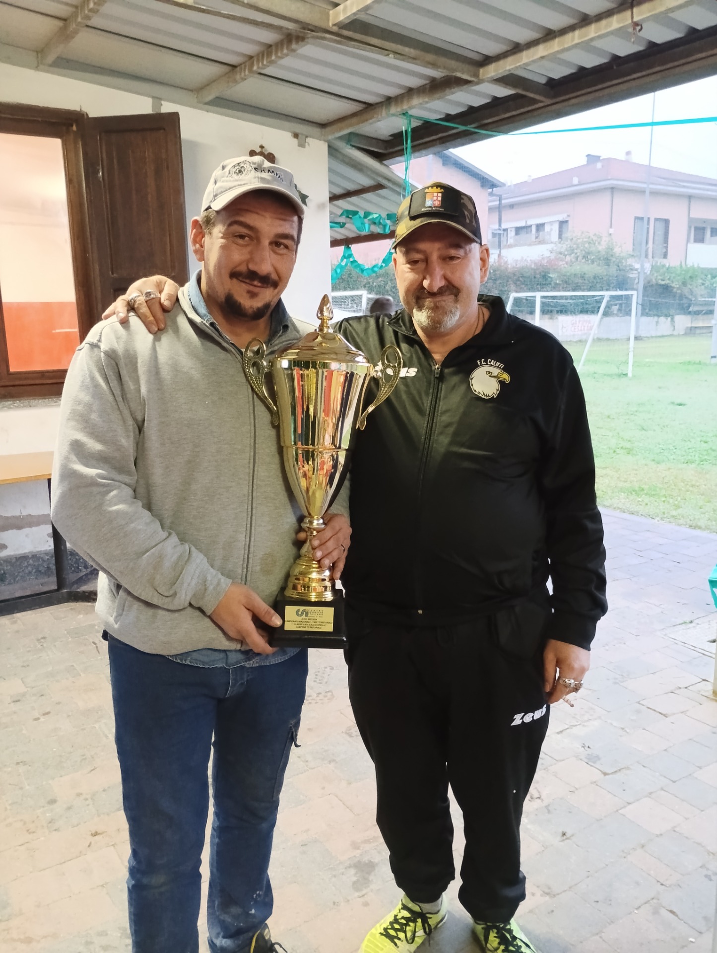 il presidente dei califfi Mattia Giarrizzo in visita a cascina calderari con il presidente della polisportiva beltrami.